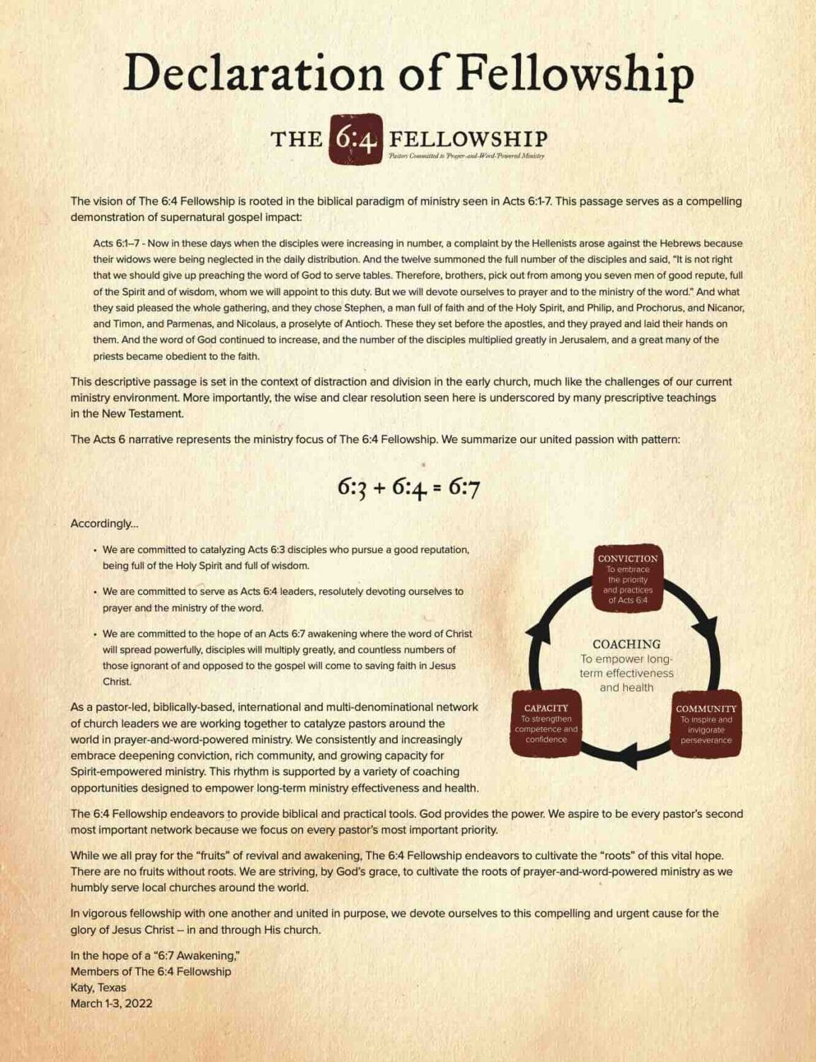 Instituted by The 6:4 Fellowship, on the 1st day of March, 2022, in Katy, TX.